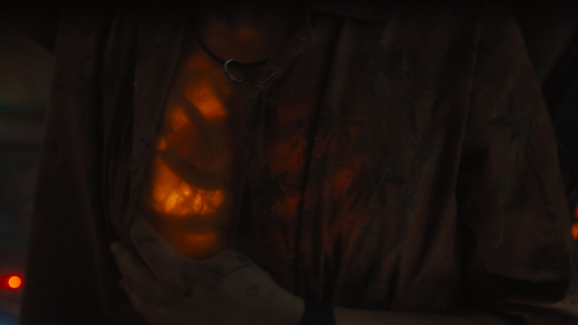 Featured prominently in the movie’s trailer is a particularly disturbing scene: the crew’s pilot, Navarro, uses an x-ray wand to scan her own chest, and finds something alive inside. It’s a clever spin on the series’ classic chestburster scenes of old and, to work, it had to look both believable and creepy.