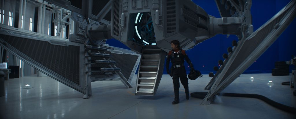 Matching the interior views of the practical and CG Avenger cockpits proved to be another challenge. “ILM’s Vancouver studio did a hologram of Cassian in season one that was absolutely fantastic and so lifelike. We reused that for Cassian’s head,” Hugueniot recounts. Filming Diego Luna in the practical cockpit occurred toward the end of the shoot, as Leo clarifies, “That was the very last thing we shot on the whole project—Diego in a motion base cockpit that we could move around and rattle. I think Diego had a really good time shooting those bits [laughs].”