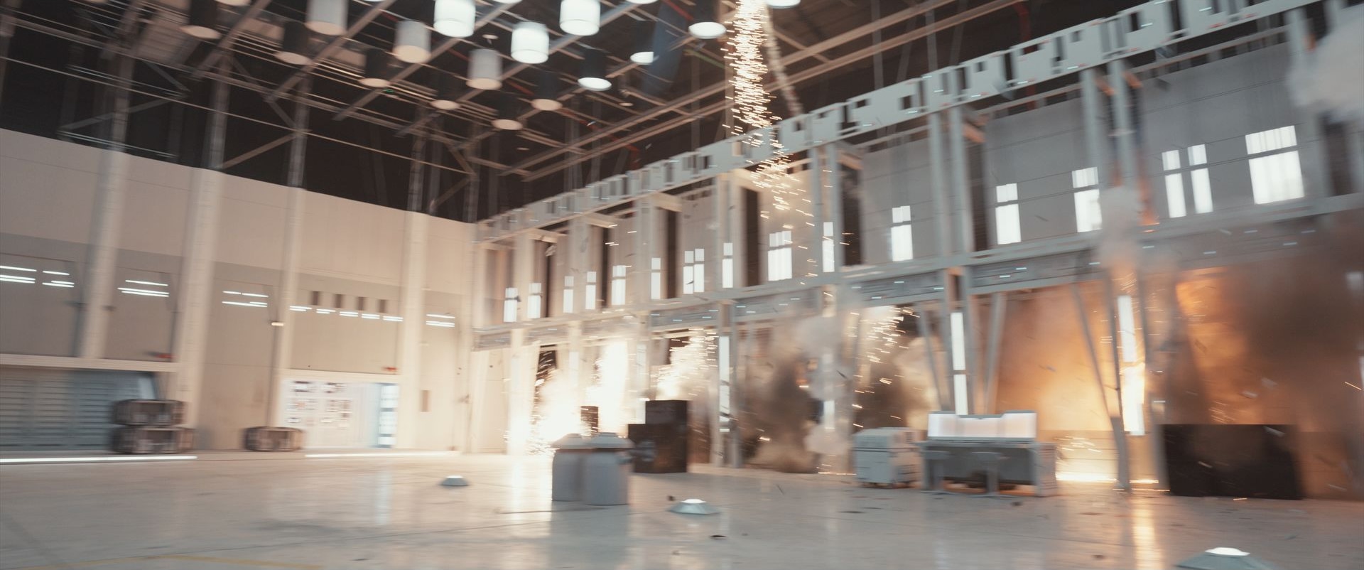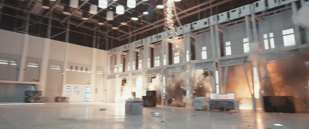 “There’s a significant amount of work involved in painting out the actual charges and all the little fragments that get blown off properly, as well. It gives you such a great base to work off when you’re putting together a shot like that,” continues Pritchard, who then shifts focus to the Avenger’s weapons blasting through the hangar. “A lot of these explosions are practical, but we’ve enhanced them by adding sparks and additional explosions in CG. Making all this work seamlessly is a great testament to the comp and effects team.”