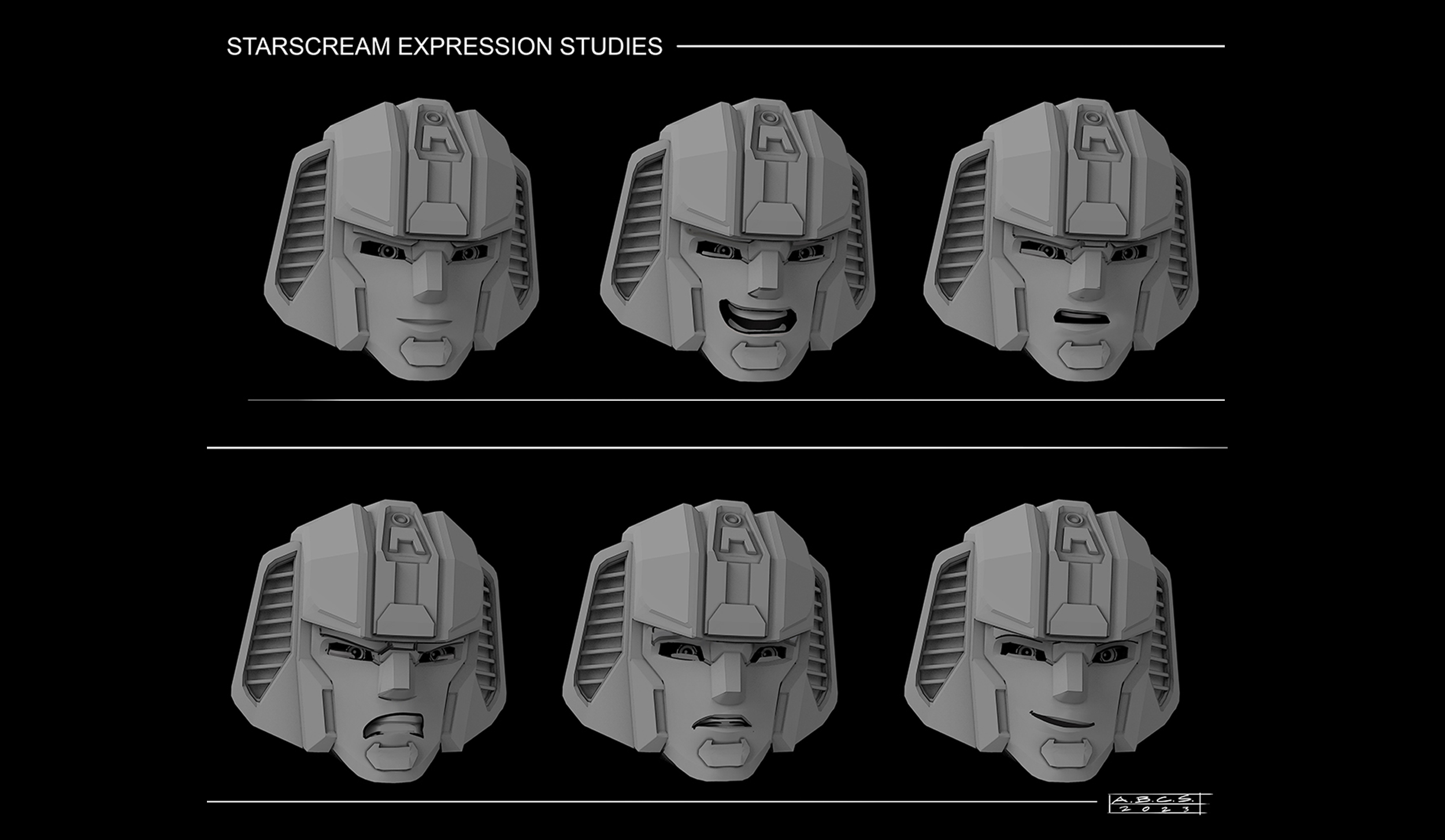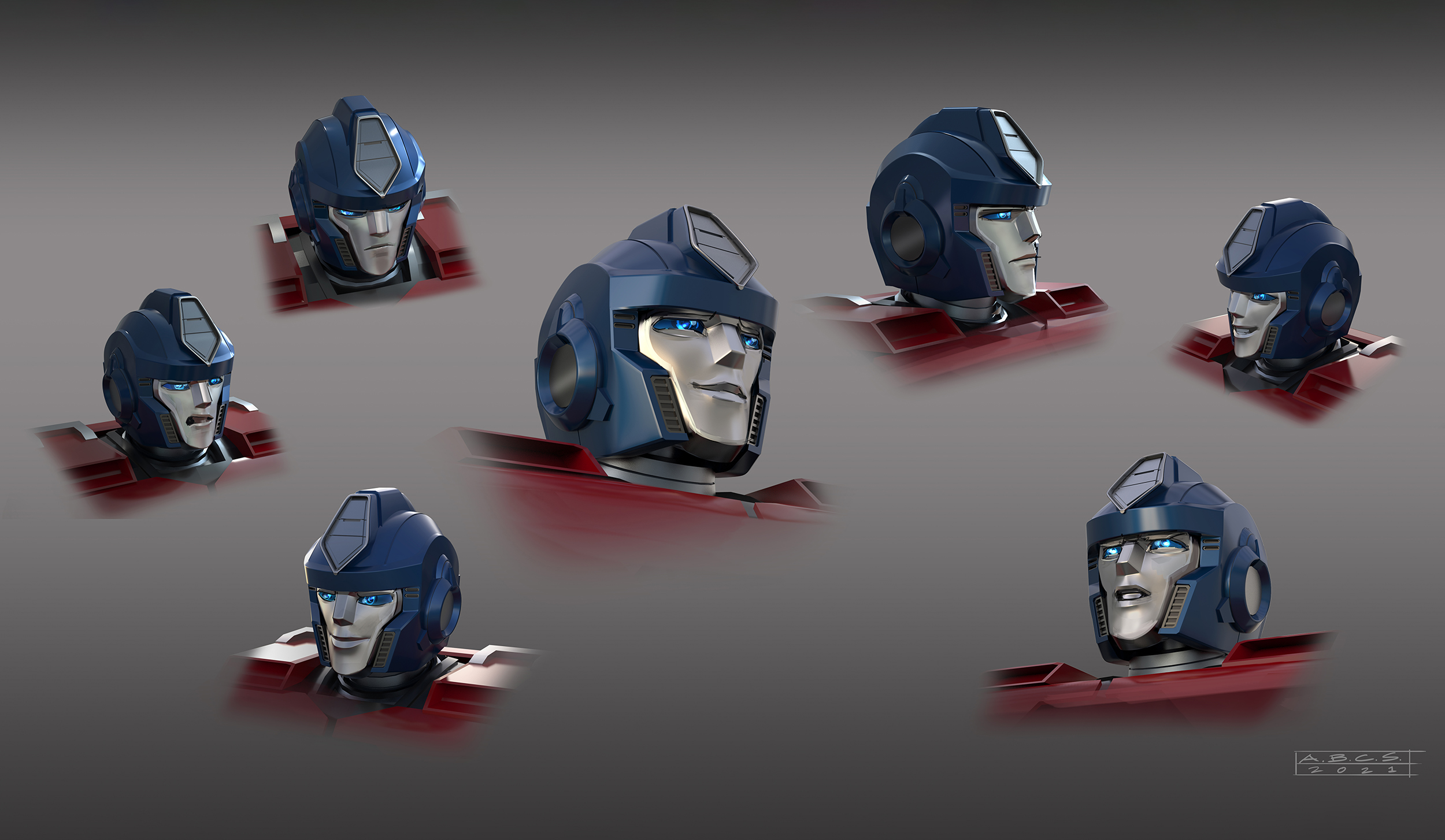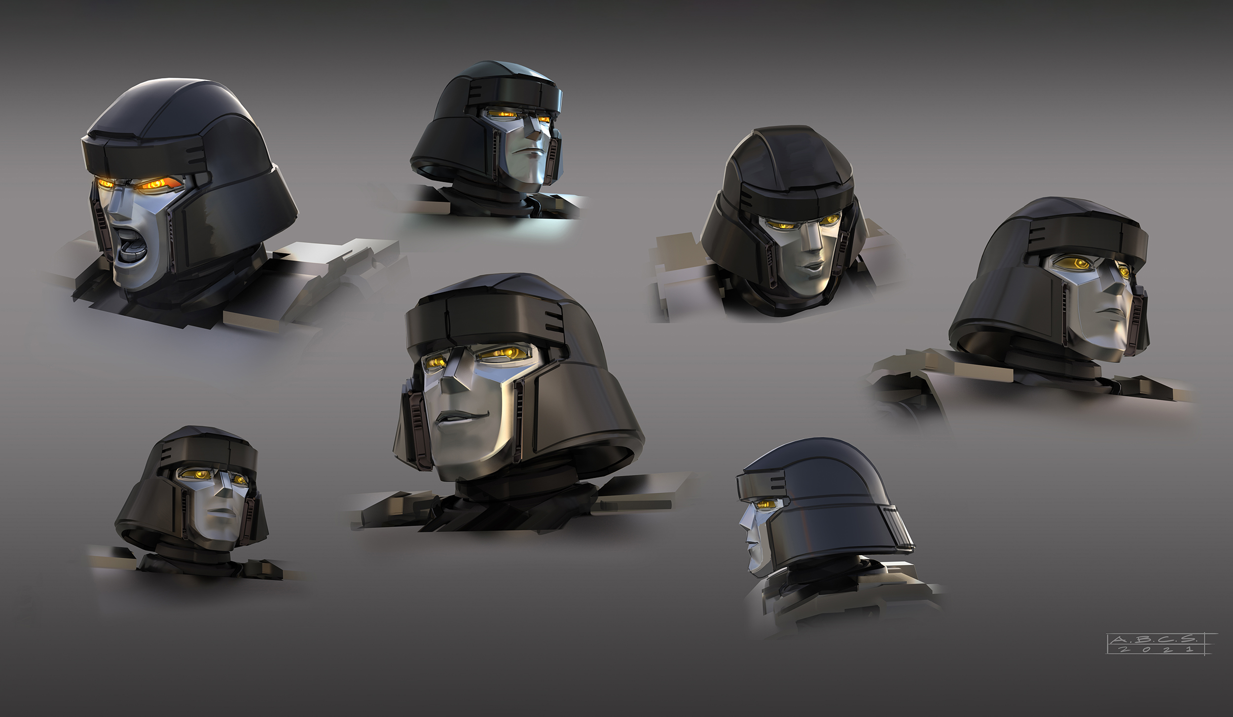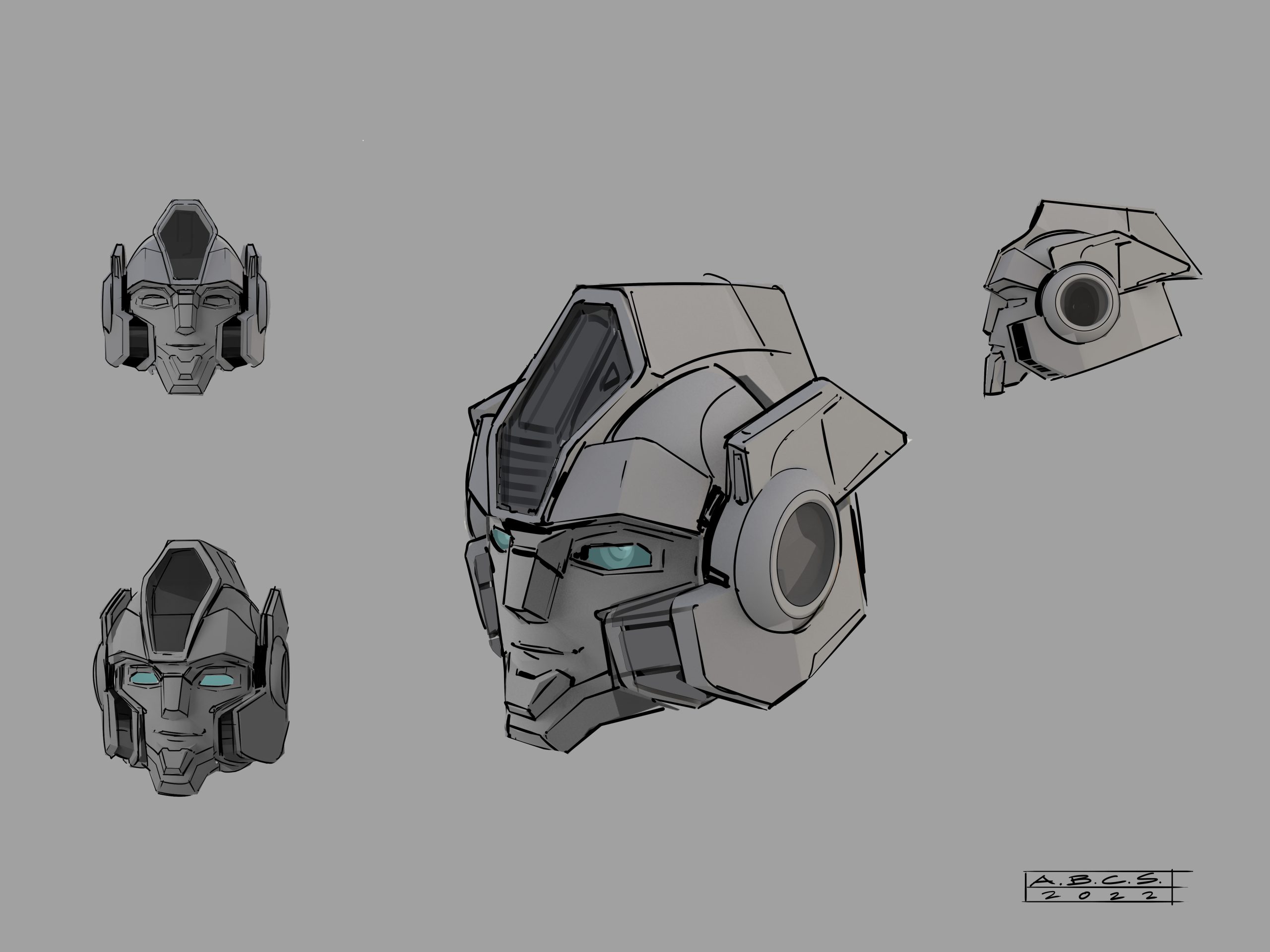 For Transformers One, the art department aimed to create shapes and silhouettes that appeared clean and simple from a distance, yet included intricate, purposeful details up-close, such as cut lines in the panels, smaller inset geometry, and layered panel work. Given that iconic Transformer designs often stem from their helmet shapes, the art department worked to seamlessly integrate faces into the helmets, enhancing their expressiveness while maintaining a mechanical, rigid aesthetic.