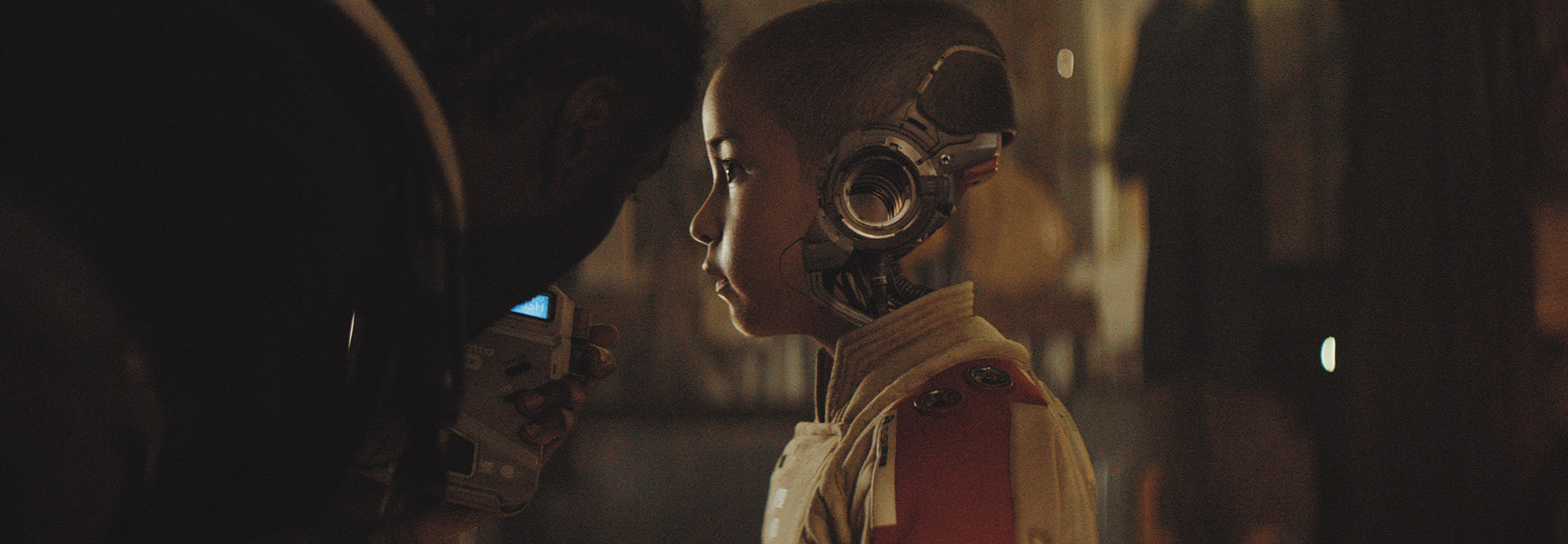 Edwards was unwilling to let his actors be covered in elaborate tracking markers, especially in the case of Madeleine Yuna Voyles, a child actor who plays the central character, Alphie. “The makeup department assisted me with the placement of just a handful of subtle tracking dots,” Roberts explains. “We thought about creating a template so that the marks would be in the same position for everyone. But because the actors were different sizes, it was more about just observing the individual and placing the dots where it worked best for them. That was a daily process whenever there was a simulant on the call sheet.”
