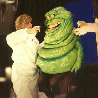 The sculpting process was a collaborative effort, with Siegel primarily handling Slimer’s body, head and face while fellow crew member and performer Howie Weed focused on the arms and hands.