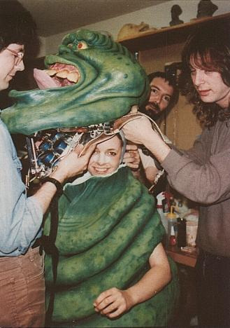 Mark Siegel, a key contributor to Slimer’s original creation, was brought to ILM for Ghostbusters 2 to resculpt the character and adapt him for the film’s lighter tone. Siegel had been deeply involved in the creation of the original Onionhead ghost, sculpting his teeth, tongue, and inner mouth, as well as the complete replacement head for a second puppet with a wider, more frightened look to the mouth. He also puppeteered the tongue and eyebrows for the majority of the shots.