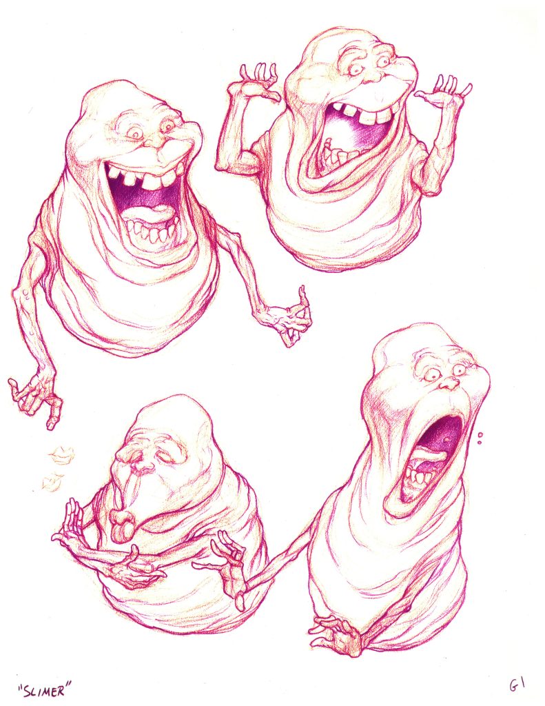 For the sequel, Slimer needed to embody the more playful, cartoonish persona. “[Executive Producer] Michael [C. Gross] wanted elements from the cartoon version incorporated as well, and to this end he had Thom [Enriquiez] do the new series of drawings – which were fabulous,” creature and makeup designer Tim Lawrence explained to Cinefex.