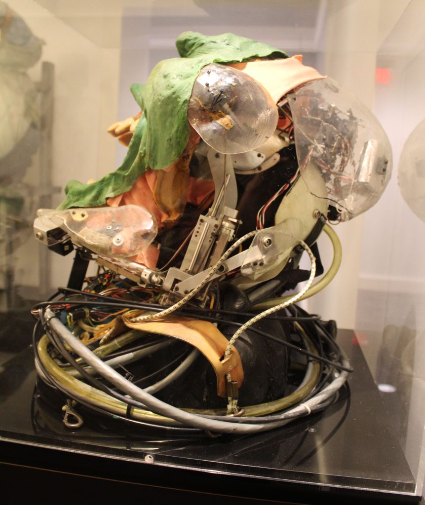 Shelby and the team had about five to six weeks of rehearsal to help her adjust to the suit and coordinate with the puppeteers operating the animatronic features. The suit itself came in three interlocking segments: the main body, the gloves for the hands and arms, and the head. “I couldn’t see anything really. So what we would do is rehearse, they would shoot it, and then they would have me watch it. So I could see what it was all looking like. So, I knew in my head what we were all doing,” Shelby explains.