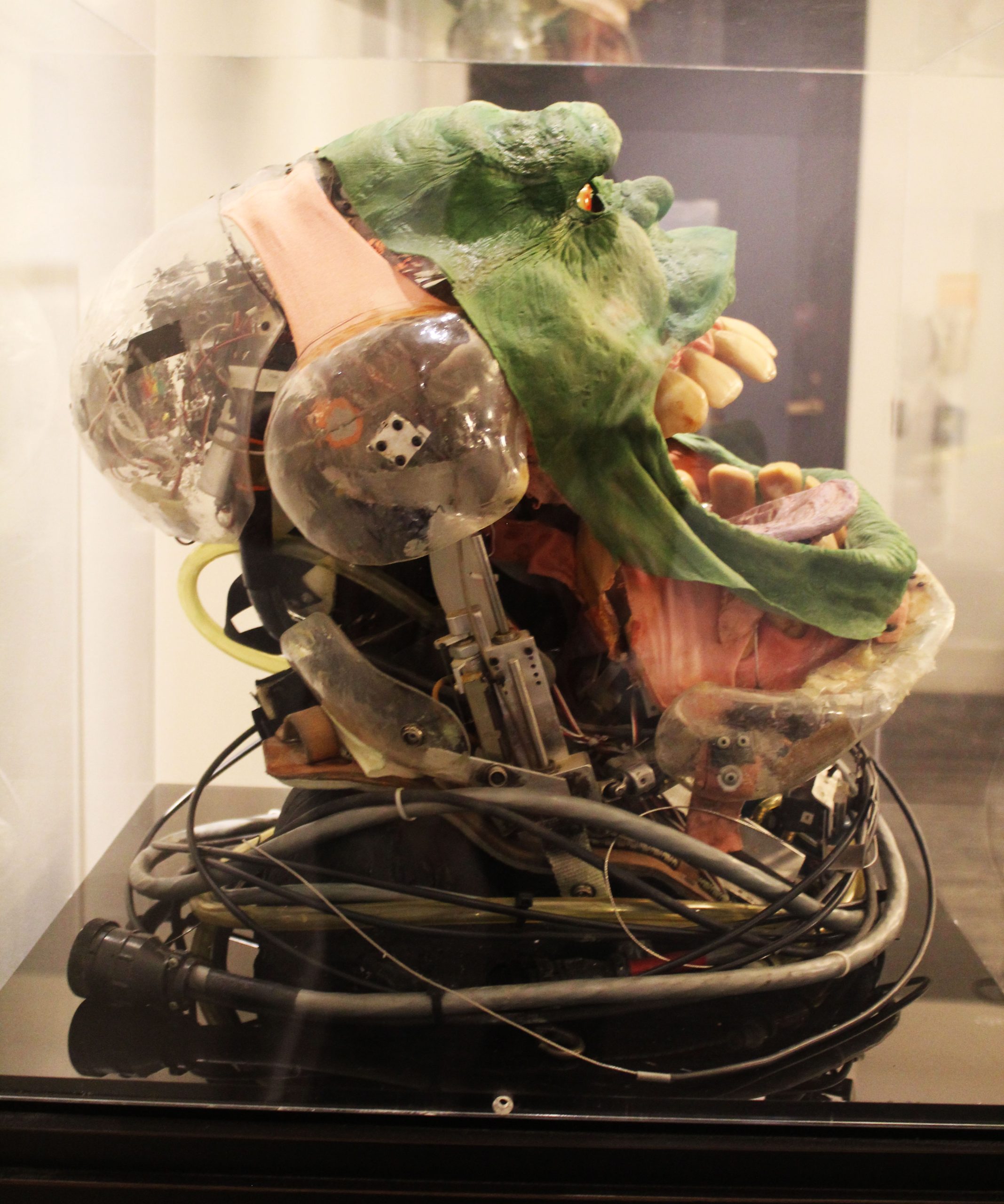 Ultimately the servos introduced their own set of challenges. While the system allowed for greater control, it limited some of the more exaggerated movements that defined the original Slimer. As Siegel explains, “In the first film, Slimer’s jaw was controlled manually, allowing for more exaggerated, chaotic movements. The sculpture was extremely soft and flexible. There was no structure in the lower jaw at all. Just a little metal rod in the lower lip and a puppeteer down below could pull it, just stretch that rubber way wide, twist it from side to side and get a whole variety of expressions, make him chew and stuff…. While the servos and pneumatics we used in Ghostbusters 2 gave us more precise control over the facial expressions, they also introduced limitations in terms of flexibility and range.”