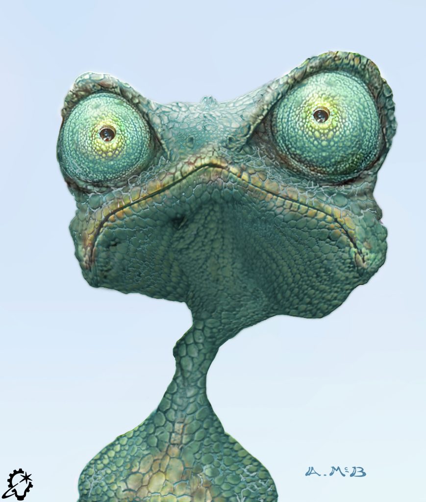 “The turkey jerky felt the best because it scattered a slightly lighter color and was the closest to the right muscle striation texture,” muses McBride, who credits his shyness at speaking up in dailies for the process, laughing, “I pushed to do the concept art as photo-realistically as possible mostly because I wanted to be able to point to the art and not have to say anything.” As Nakabayashi explains, “Aaron took a plastic skull, a bunch of costumes, and turkey jerky, scanned it, and put all these textures on the face. This gave Gore a direction for his movie, and it was a huge moment. Everybody was trying to copy Aaron after that. We still drew and did other traditional methods, but all of a sudden, everything had to be photoreal.”