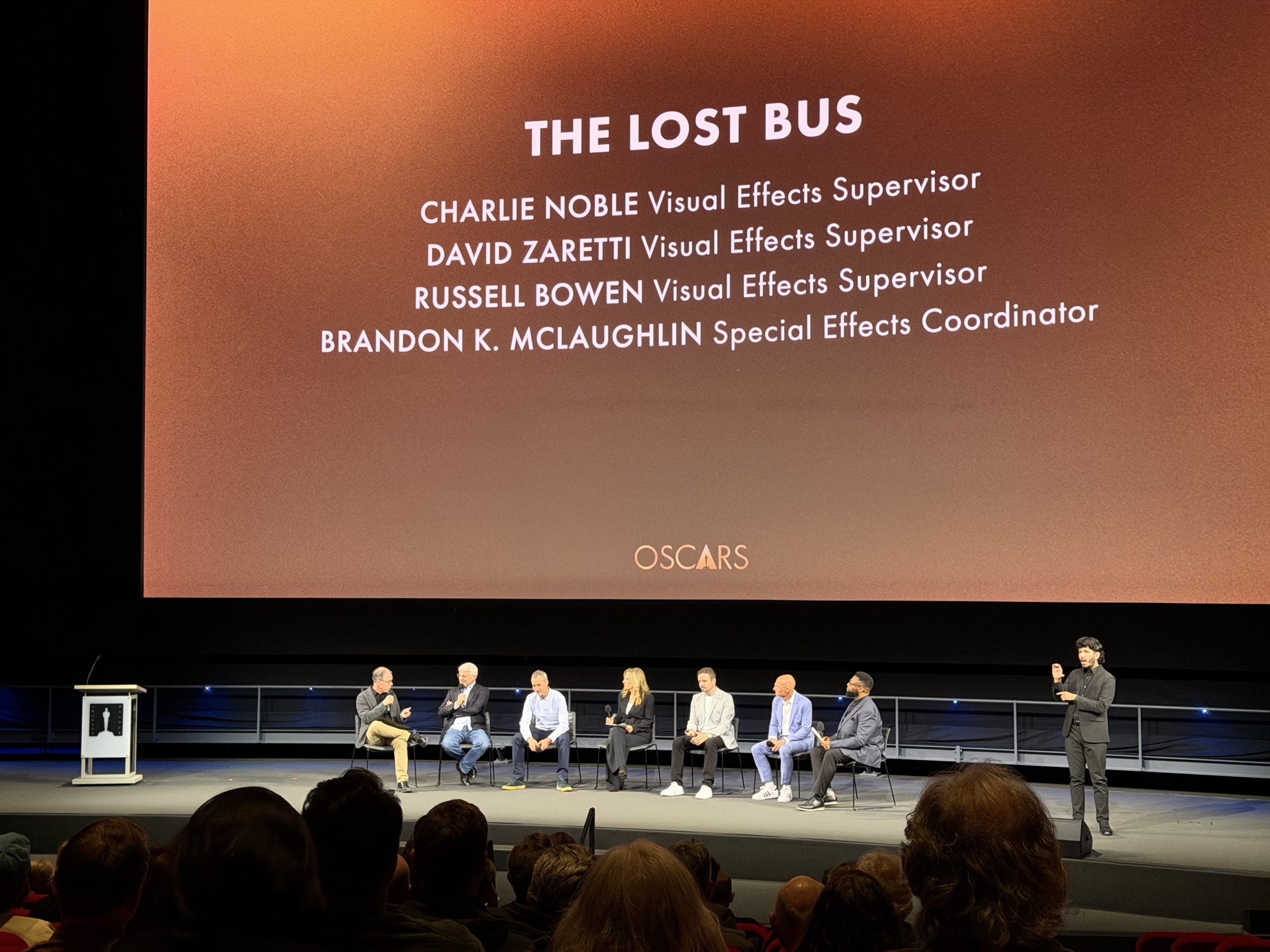 For The Lost Bus, ILM visual effects supervisor David Zaretti has been nominated along with production visual effects supervisor Charlie Noble, beloFX visual effects supervisor Russell Bowen, and special effects coordinator Brandon K. McLaughlin.