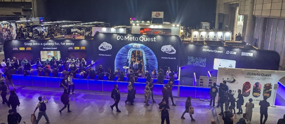The ILM & Meta booth was a sensory playground inside the Makuhari Messe convention center. Massive screens played cinematic trailers, customized demo pods housed players during their sessions, and photo walls for each title were available for fans to snap a pic after going through the experience of their choice. With wait times of up to three hours, the booth also offered unique fixtures, like an interactive button wall, and a crew of knowledgeable staff were around to answer questions and help fans prepare for the adventures ahead.