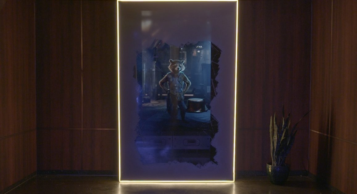 Stepping in front of a TVA timedoor, fans at D23 were able to directly interact and speak with Rocket Raccoon as he answers their most burning questions. The experience was brought to life through the innovative collaboration between Marvel Studios, Disney’s StudioLab, and ILM, where markerless mocap actors were able to control a high-fidelity photoreal render of Rocket in real-time.