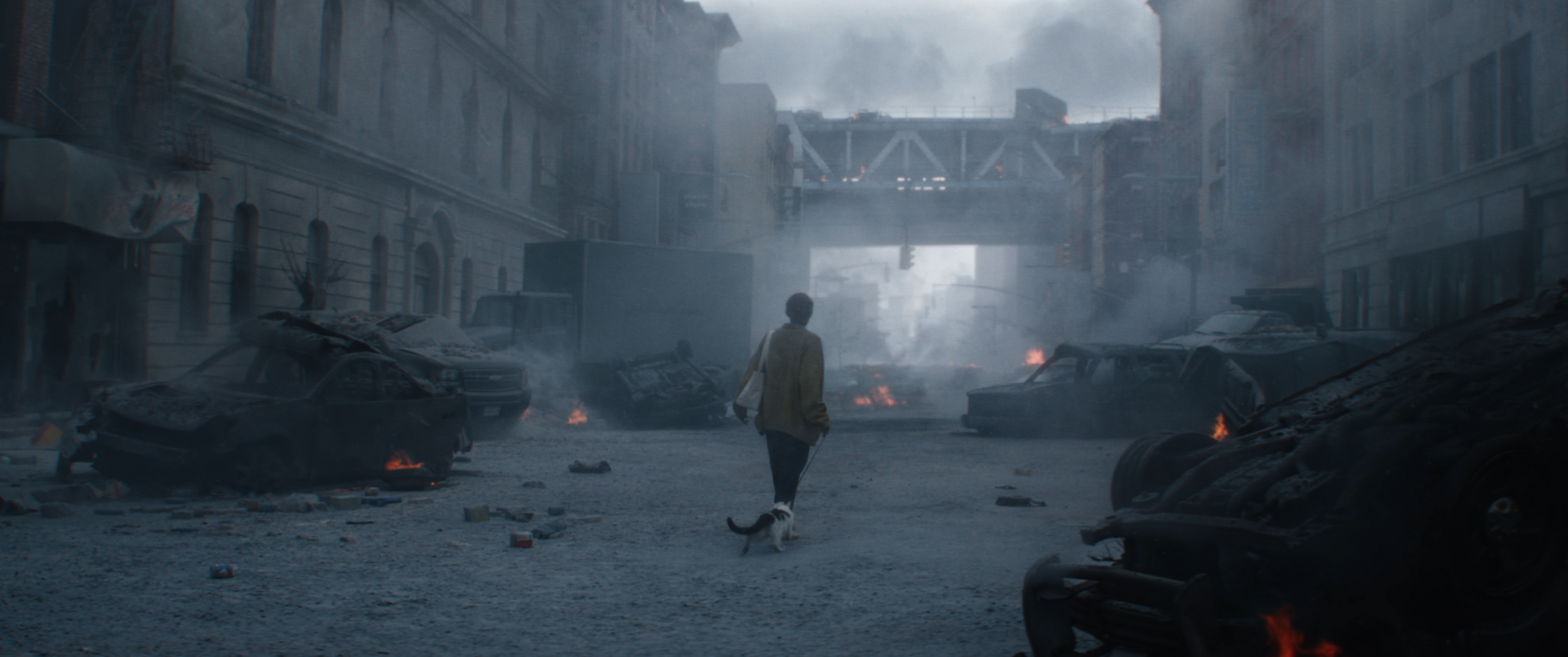 While Frodo the cat is entirely practical (played by two different feline stars, Schnitzel and Nico), a scene requiring the animal to weave through a frantic crowd running from the aliens required extensive digital artistry from ILM.