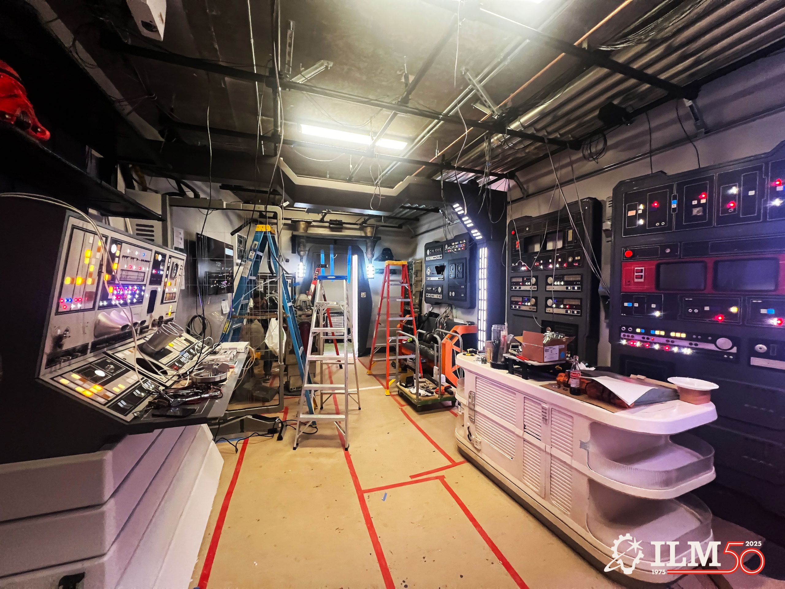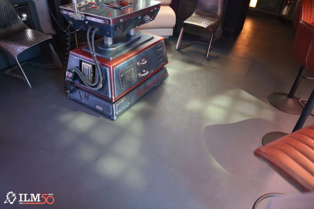 Learning about the Hideout project, Lucasfilm archivist Portia Fontes contacted the team offering use of a number of screen-used props and set pieces from recent productions, including Rogue One: A Star Wars Story (2016), Solo: A Star Wars Story (2018), Star Wars: The Rise of Skywalker (2019), and Andor (2022-25). The group’s response was a collective “WHAT?!” “We could never have built anything as amazing as these set pieces with the time and budget available,” says DiComo.