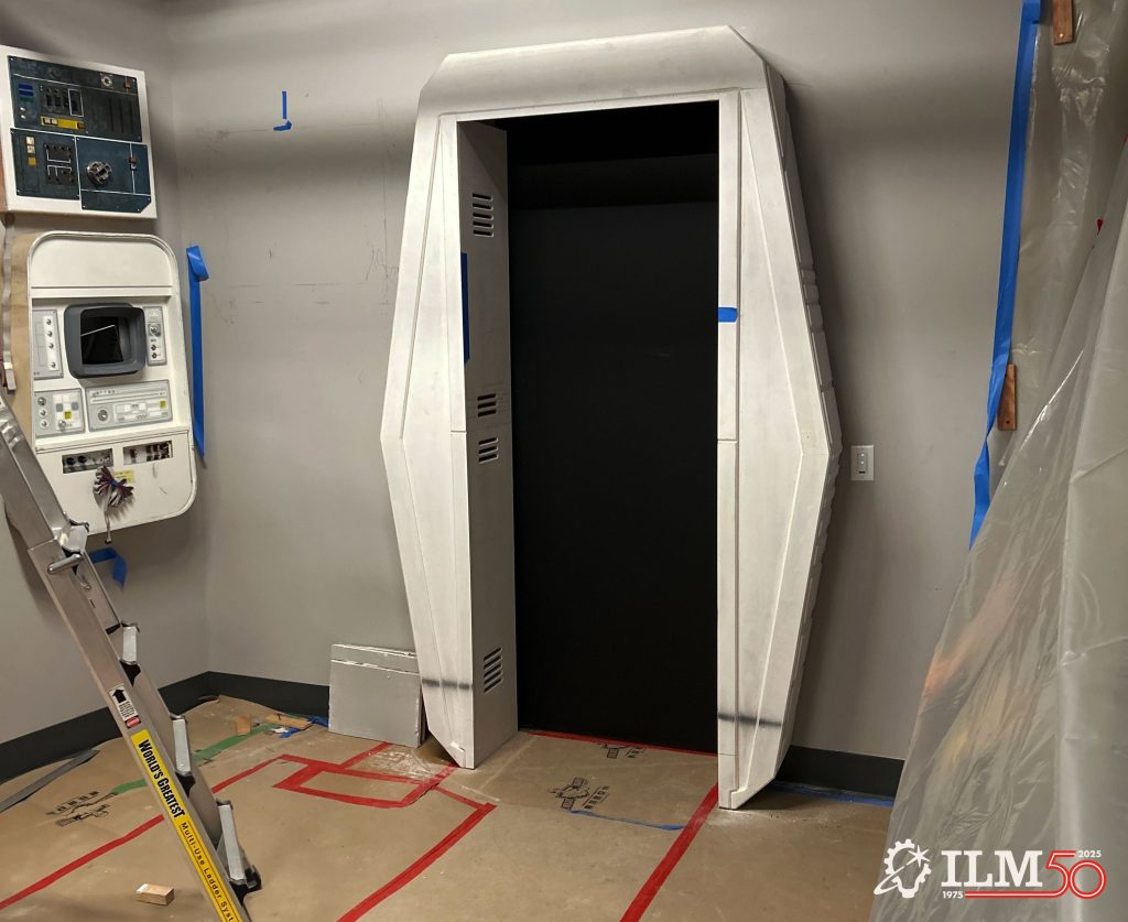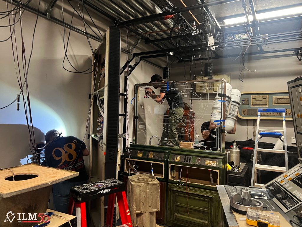 Senior lighting artist Rebecca Forth had been leading set decoration since the beginning of the year, and now her sub-group worked to paint and detail props out in the hallway. “For me, this project felt similar to what it must’ve felt like to work in the ILM Model Shop back in the day,” Forth comments. “It felt like this was the closest I’d ever get to that tactile experience of putting your hands on everything, and making little mistakes that actually turn into a great feature. It was about having everyone together and trying to figure out how things would function.”