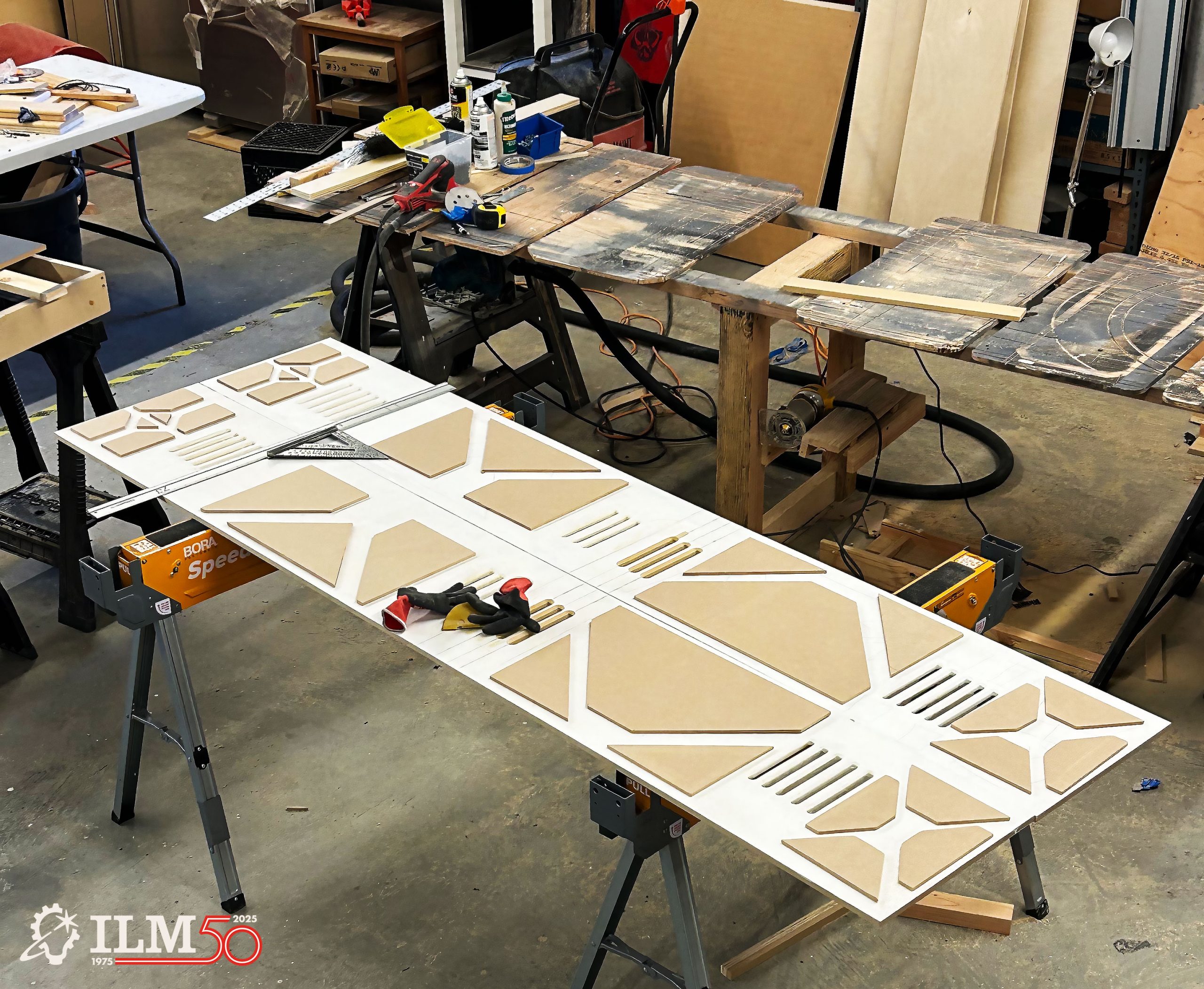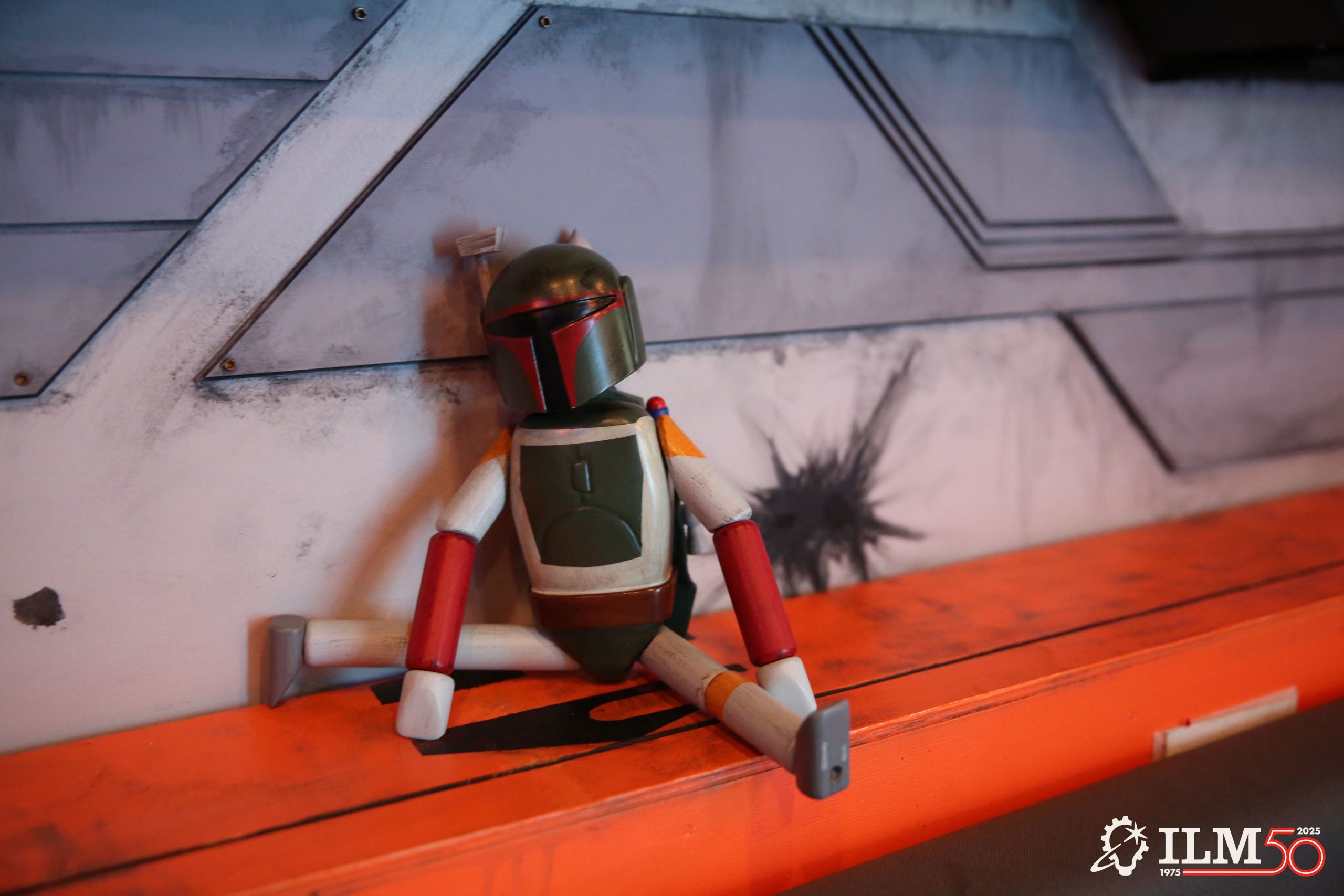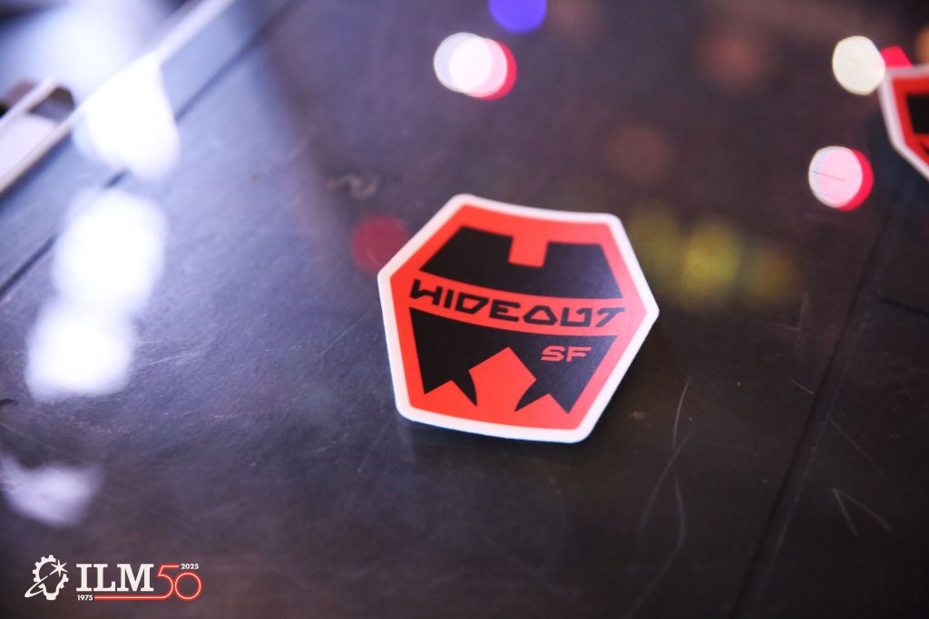 The Hideout team also knew that they wanted a unique insignia for their space, another project that Johnson took the lead on, working with associate producer Michelle Thieme, executive design director Doug Chiang, and other members of the Lucasfilm Art Department. Inspired by the shape and silhouette of the iconic Yoda Fountain at the entrance to the Letterman campus, Johnson describes it as “our signet,” in reference to the icons used by characters in The Mandalorian (2019-23). (Jennifer Foley, manager of Lucasfilm’s Company Store, even ensured that special crew shirts would be available for the team within a matter of days.)