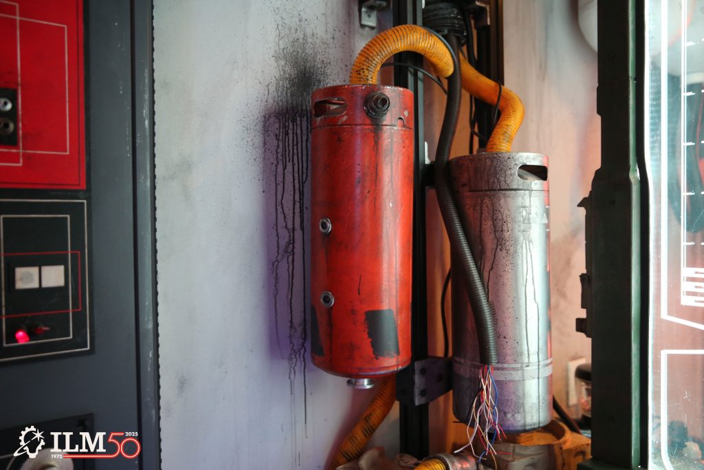 The team created a top-down rendering of the room with accurately-scaled pieces for furniture and components, which Jutan and Hirschfield call “dollhousing.” Space was key, both in terms of packing in as many authentic details as possible and for maintaining appropriate room for access and flow. Some items, like a giant vaporator, were cut during this phase due to limitations.