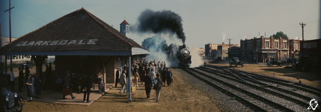 The second sequence ILM presided over focused on a train arriving at a Mississippi station. “We did a lot of photorealistic reconstructions of the Clarksdale train station,” Marshall begins. “When we started discussing it, production was going to have a real locomotive come into the station. We were just going to do environment extensions. As it turned out, they struggled to make it work with the timing and location, so we took over the train component too. That became a big deal for us, because we had assumed the practical train would block a lot of our environment throughout the sequence.