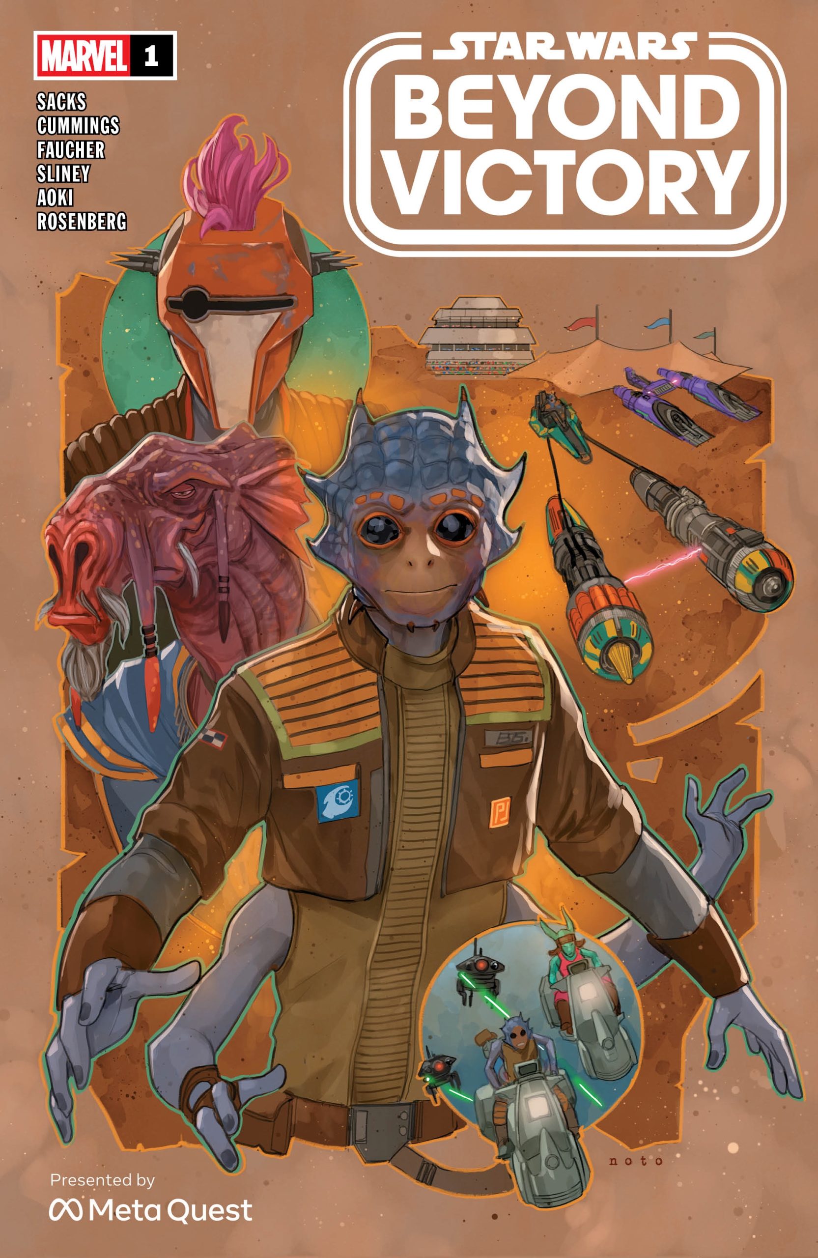 Fans attending Star Wars Celebration will find the ILM/Meta activation at Hall 4, Booth #20-5. Along with an introduction to Beyond Victory, they can pick up an exclusive giveaway Marvel comic of the same name. The prequel story to the mixed reality playset is written by Ethan Sacks with cover art (pictured below) by Phil Noto and interior illustrations by Will Sliney, Steven Cummings, and Shogo Aoki.
