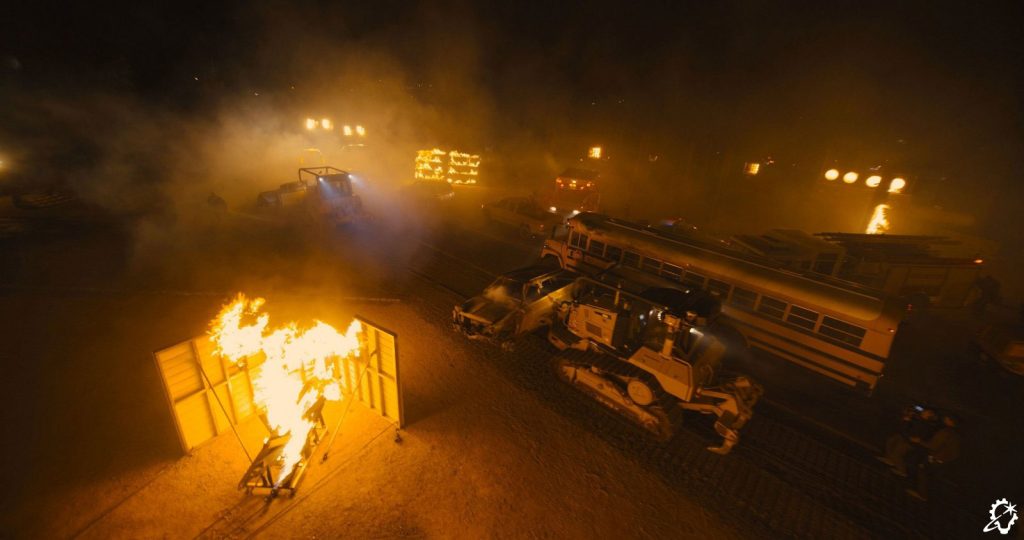 Incorporating the original 2018 fire conditions increased the scene’s realism and sparked a somber thought for the ILM artists. “The reason the event was so devastating was because the extreme winds made the fire spread, so we always had to convey a sense of high-directional wind by simulating the grass being blown. The environment looked so good, and we wanted to show it off, but it needed to be dark. We had to bring it down and use the distant firelights to illuminate it. We wanted it to feel realistic, which was enough to make it terrifying. It’s difficult because I kept getting excited about our shots – but then I reminded myself that this actually happened and must have been absolutely horrifying,” Zaretti states.