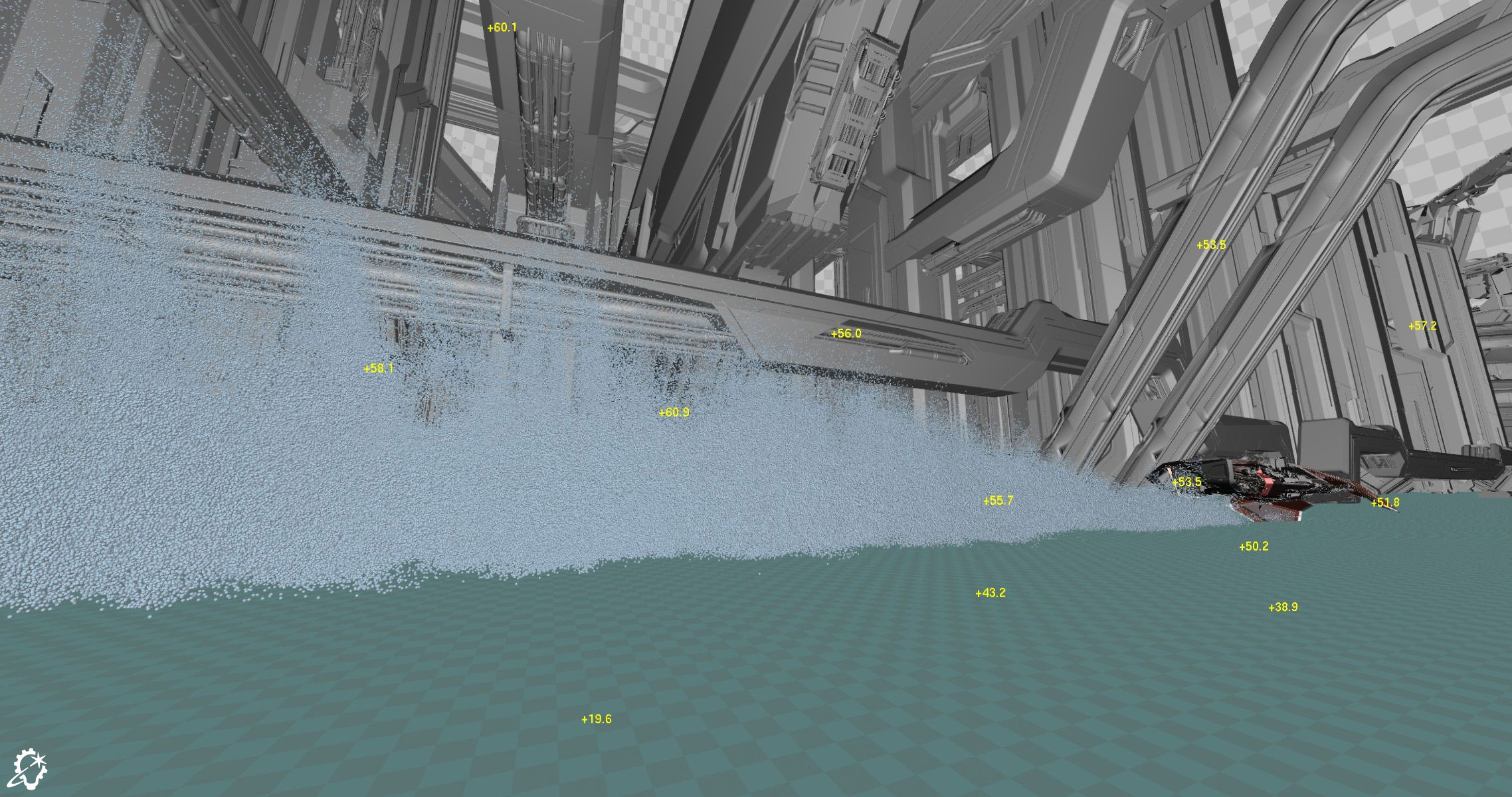 While the appropriate level of detail was required for scale at the surface perspective, Capogreco relays that “when we were up high, it became too busy and noisy, with many moving dots. So, we actually built two Grids. One sufficed for the wider views and was a more simplified version. Our team went in and hid much of the noise, guaranteeing the audience would at least see the shapes and silhouettes. When you’re down at water level, the geometric resolution needs to increase. Every section of the environment was fairly unique and required a huge design process to support the narrative.”
