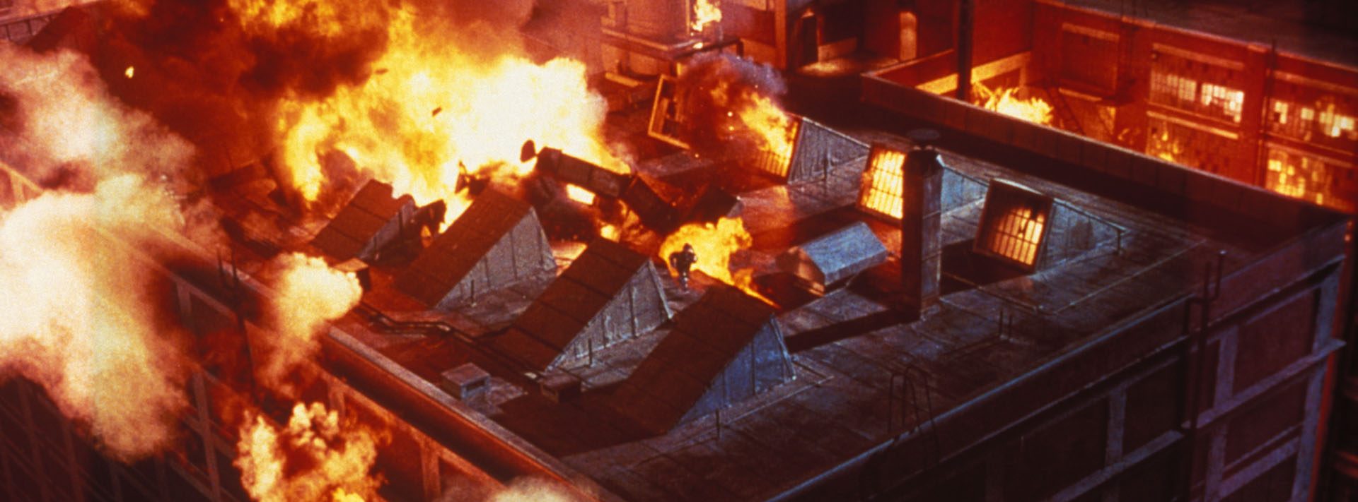 ILM contributed to a number of critical shots for the film — cutting seamlessly with the onset special effects supervisor and cinematographer’s incredible work — and its miniatures, matte paintings, and live action elements were combined to create the magnificent imagery of a burning, collapsing rooftop. The ILM team was honored with an Academy award for Best Visual Effects for their work.