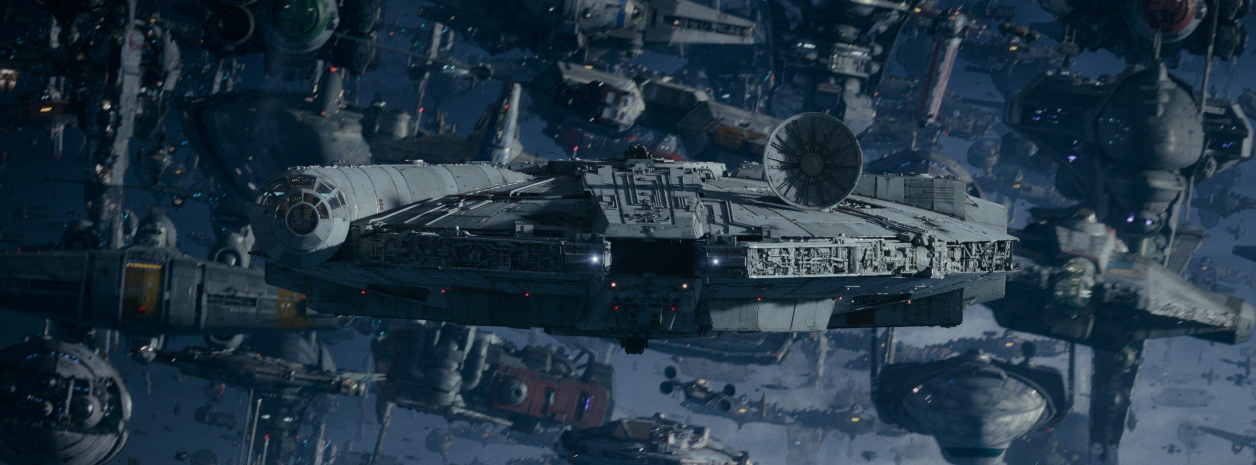 Of the many challenging effects that the team had to undertake, repurposing Carrie Fisher’s previously unused takes from episodes VII and VIII to create a whole new performance suitable for this story was a tremendous one. Crafting the new performance would require careful planning by the filmmakers and some deft sleight of hand by the visual effects team. Camera moves from the original shots were painstakingly replicated in CG and output for motion control, Dan Mindel’s on-set lighting for the new shots had to match precisely to the archival footage as well as ILM’s digital additions such as wardrobe and hair. In the end, we see General Leia in conversation with Rey in a powerful and moving scene that couldn’t have been possible any other way.