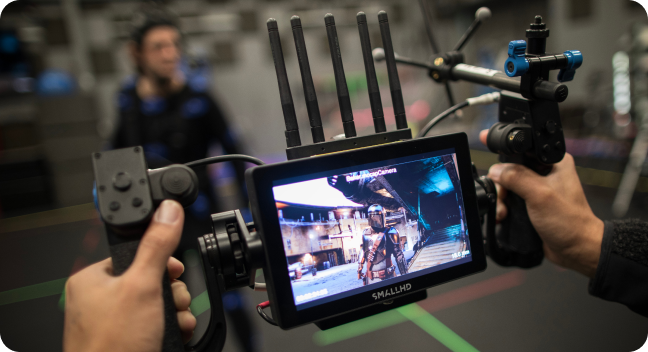 Building on ILM’s pioneering virtual production toolset, filmmakers operate intuitive virtual cameras based on the filmmaking tools they’ve grown accustomed to on set. From operating a handheld camera to manipulating traditional wheels, or moving the camera on a dolly, camera crane, or Steadicam, filmmakers can take advantage of our tools throughout all phases of production.