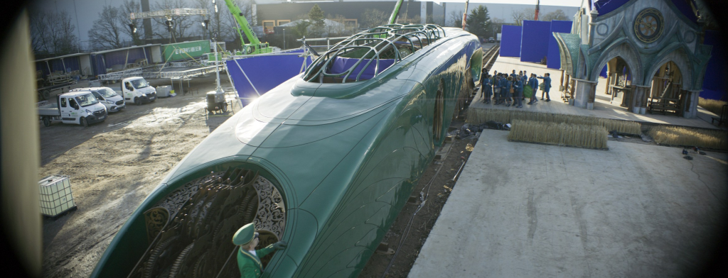 The scale of the sets also dictated when practical elements could give way to digital enhancements. “The interior sets go up to 25 feet and the exterior sets go up to 55 feet and then after that we take over as visual effects,” says Helman. “Special effects were really big too.Paul Corbould and his team built a huge train. But the gears were not moving. So that’s where visual effects lends a hand. And the gears under the train are visual effects. And the inside of the train is visual effects because there was a small section built, but not the whole thing.