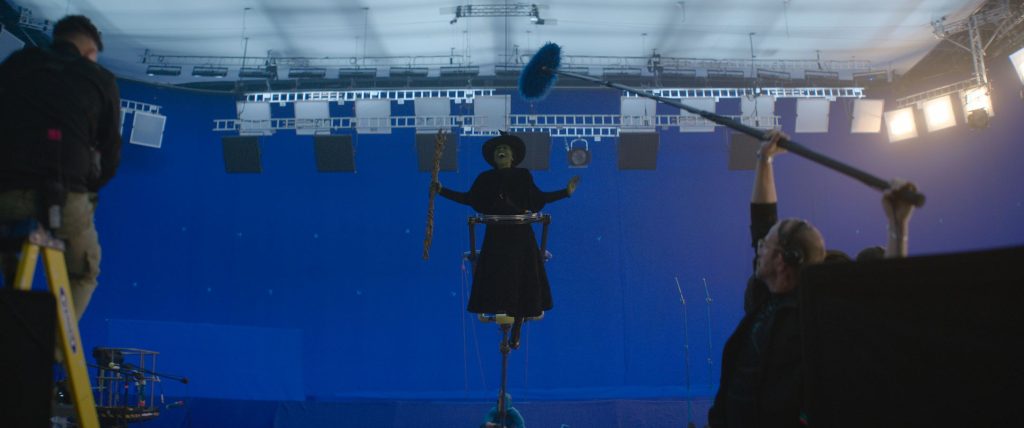 Magic is, of course, central to Wicked, and Helman’s team took a deliberately subtle approach to its visualization. The Grimmerie posed unique challenges. “It wasn’t really thought out when we were shooting,” he admits. “Most of the time, Cynthia was in front of a blue square, gesturing as directed. But we ultimately made it so that the words became golden, with pages moving. It feels tactile and grounded, not over-the-top. We weren’t going for that kind of fantastical thing, because it’s been done before. Even if we were doing a visual effect, it had to look practical.”
