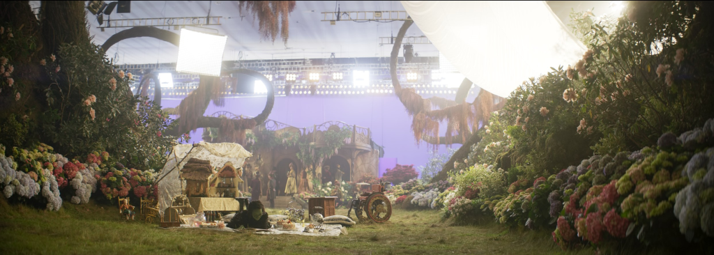 He elaborates on the process of blending the practical and digital elements. “There’s a shot in the beginning, of kids running through the tulips towards Munchkinland, and the matte line is around the kids. You know, after that, it’s all visual effects. Is it useful? Yes, for the actors, they have something there. But we changed the lighting, added the sun, and completed the tulips in post. The final look is a collaboration.”