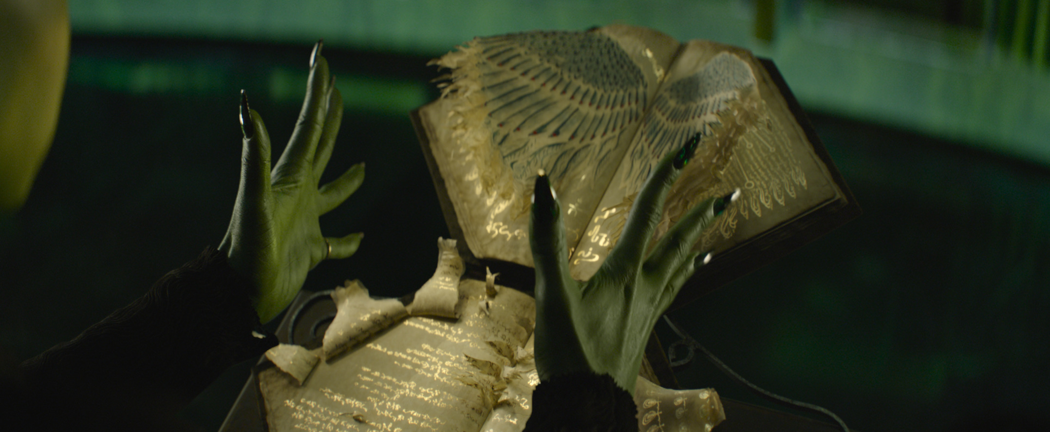 Elphaba’s imperfect spellcasting in this scene also adds another layer to her character. “Due to her inexperience, she’s not very good at casting spells. Every time she does, something bad happens,” Helman says. “It’s relatable—magic grounded in imperfection, just like life.”